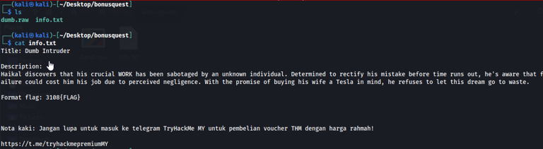 After examining, it seems like we would have to find a flag with the format 3108{FLAG} inside the .raw file which we further analyzed using the file command. We reckon that it might be a windows memory dump file.