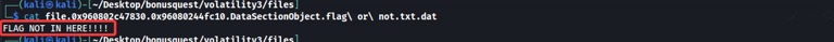 Now that we found the flag files, we can examine the content by dumping the files using the **windows.dumpfiles **plugin. We take the respective offset number from the filescan results for each of the files so we can examine individually. We output the results in a folder we created name “files”.