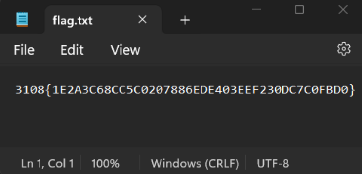 There seems to be two files inside, an image file and a flag.txt file. Now if we try to extract, it asks for a password. With the earlier hint, we entered “3108”” as the password and we get the flag for the first part of the task. The flag is 3108{1E2A3C68CC5C0207886EDE403EEF230DC7C0FBD0}
