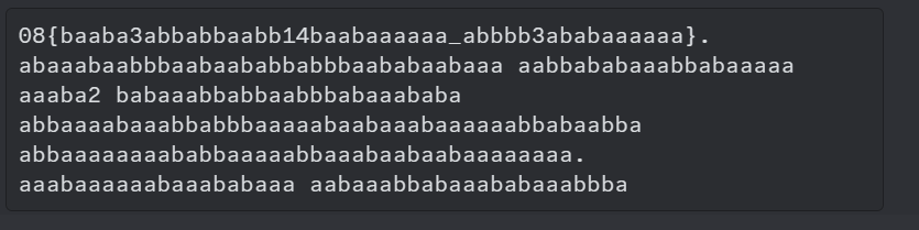 We get this when decrypting the message, however it still seems to be a little scrambled. This is probably because there are characters and numbers in the message which shouldn’t be in a Bacon Cipher. Now let’s try to remove all the unneeded characters and only focus on the flag part which starts with 3108{ }. Let’s try to decrypt the text by breaking it down like this