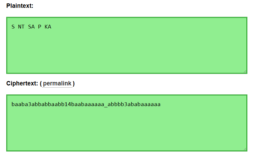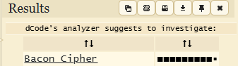 Using a tool to analyze the cipher text, it seems to be encrypted with Bacon Cipher. Let’s try to decrypt it now.