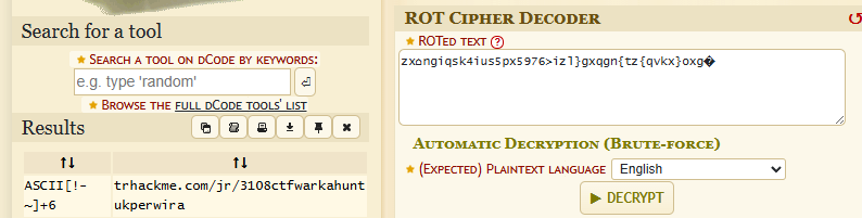 It seems to be a ROT ciphertext, decrypting it yields us a TryHackMe room.