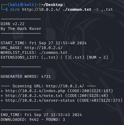 Using dirb, we found a file called note.txt. Now we can examine the contents of the text file.
