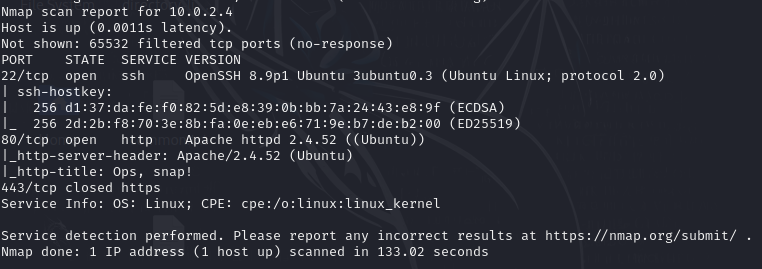 Next, run a basic nmap scan nmap -sC -sV 10.0.2.4