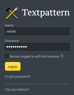 It appears that this is the admin page of the textpattern CMS. We need some credentials to access this. We can use the credentials obtained earlier in the page source of the website which is rok14h:rok14h@l33t