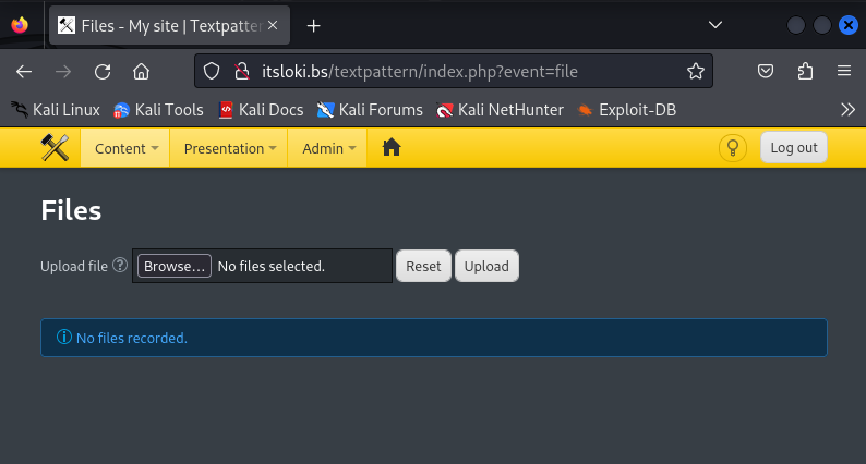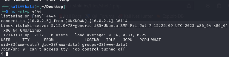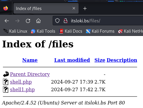 Now let’s upload the file and activate it by browsing into the file via a browser. It can be browsed here http://itsloki.bs/files (we found this directory earlier with dirb) and clicking on the file.